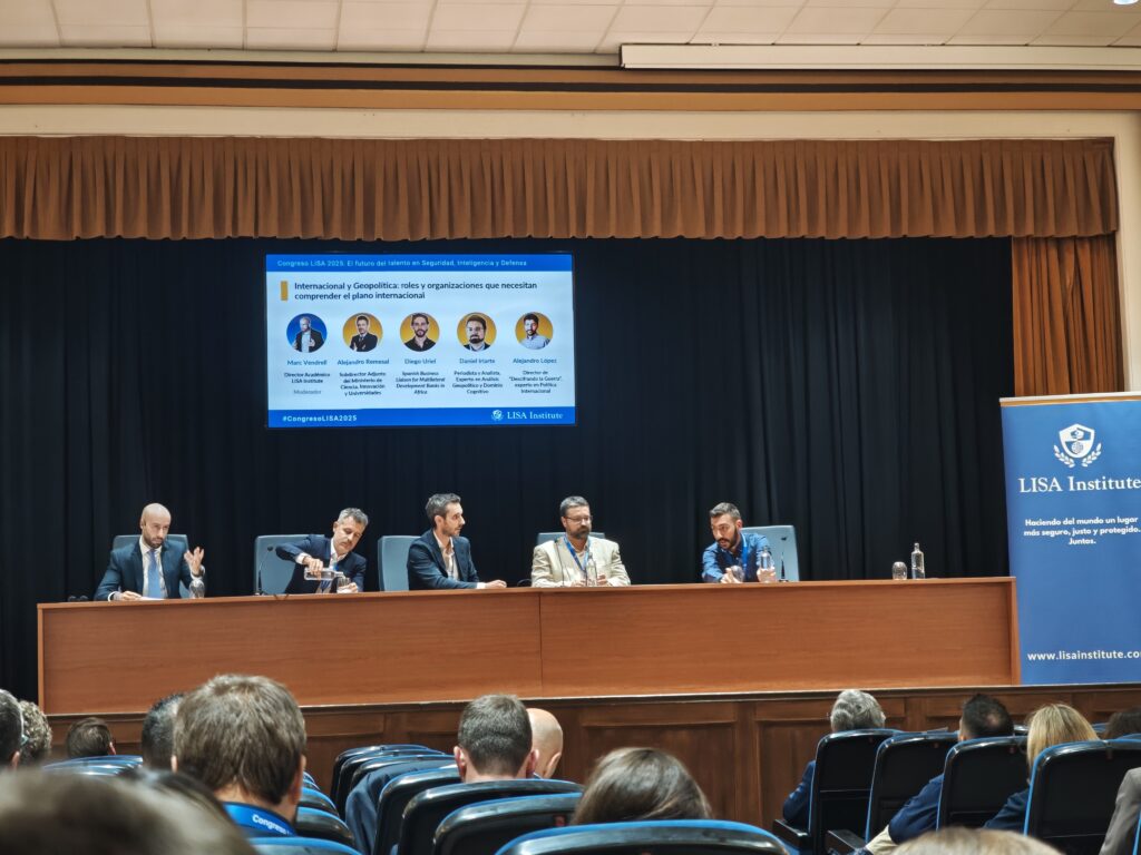 La última mesa del Congreso, moderada por Jordi Serra, Director de Estrategia y Prospectiva de LISA Institute, contó con la participación de destacados expertos: José Luis Calvo (Coronel del Ejército de Tierra), Juan Bustamante (Coronel (R) del Ejército de Tierra), José Antonio Mathes (Jefe de Área en la CITCO) y Hugo Zunzarren (CISO & Corporate Intelligence Lead en Bravent).
