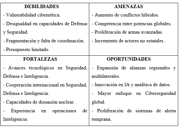 Análisis DAFO de elaboración propia en el que se expone el actual panorama geopolítico internacional: